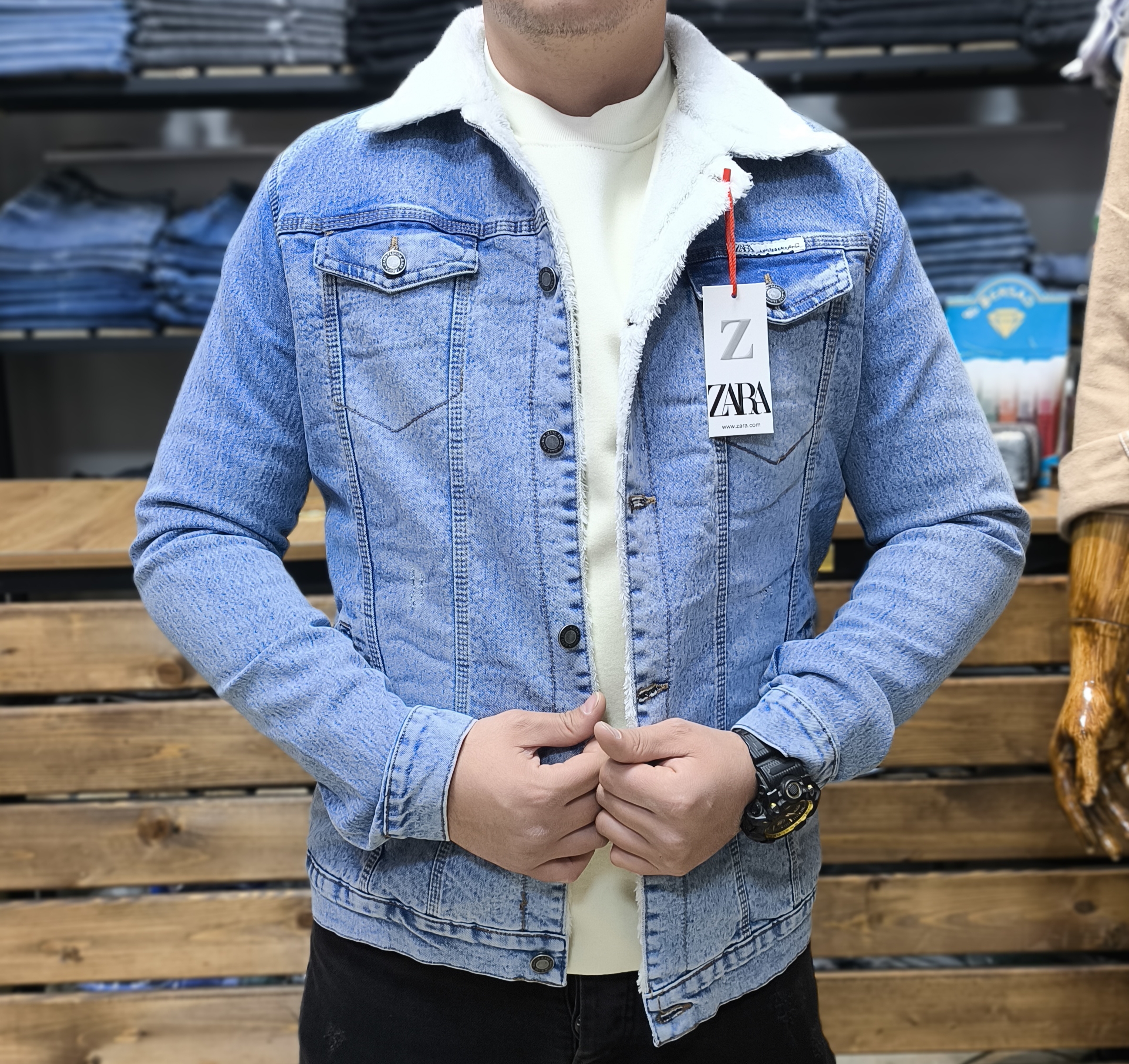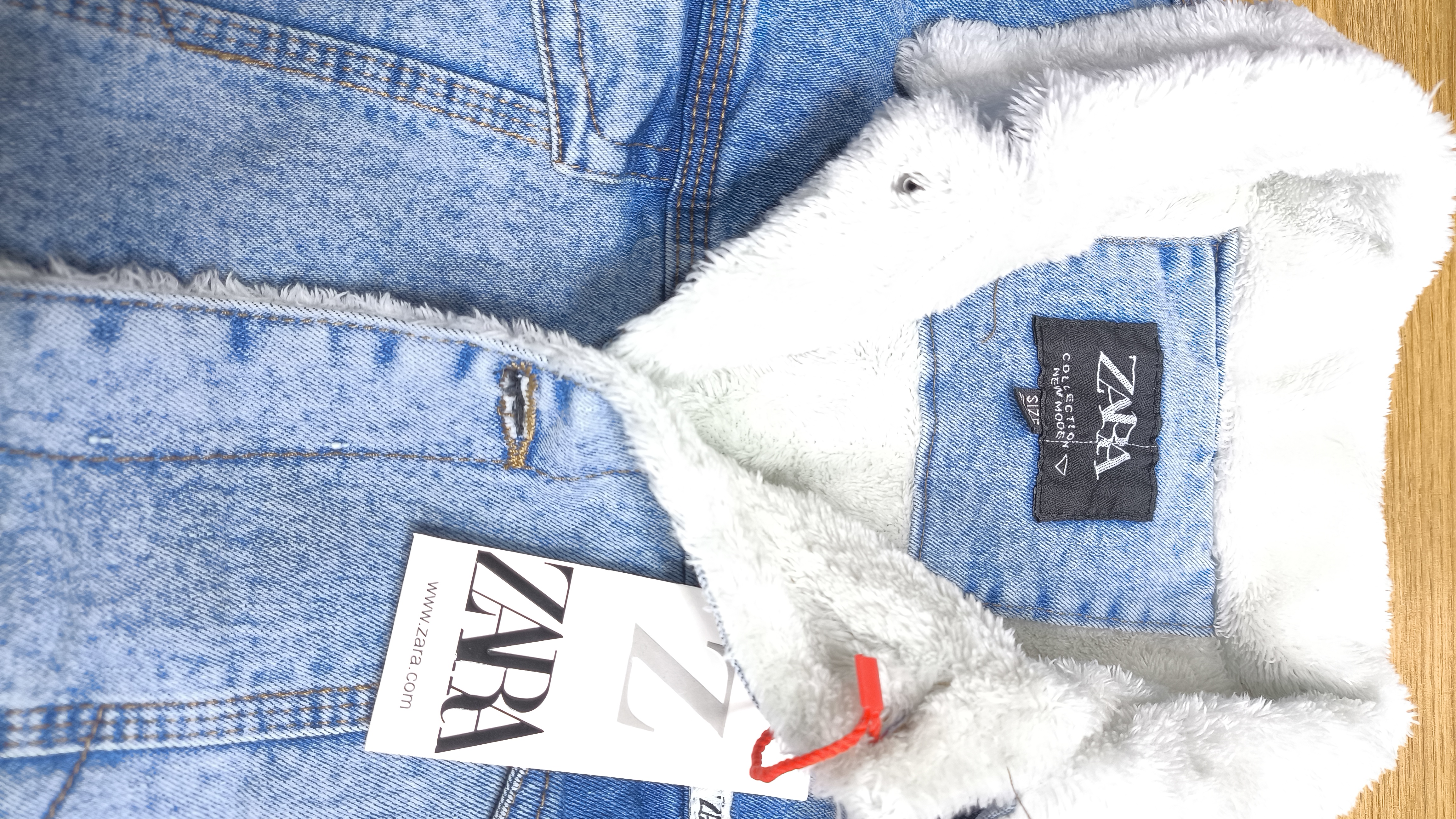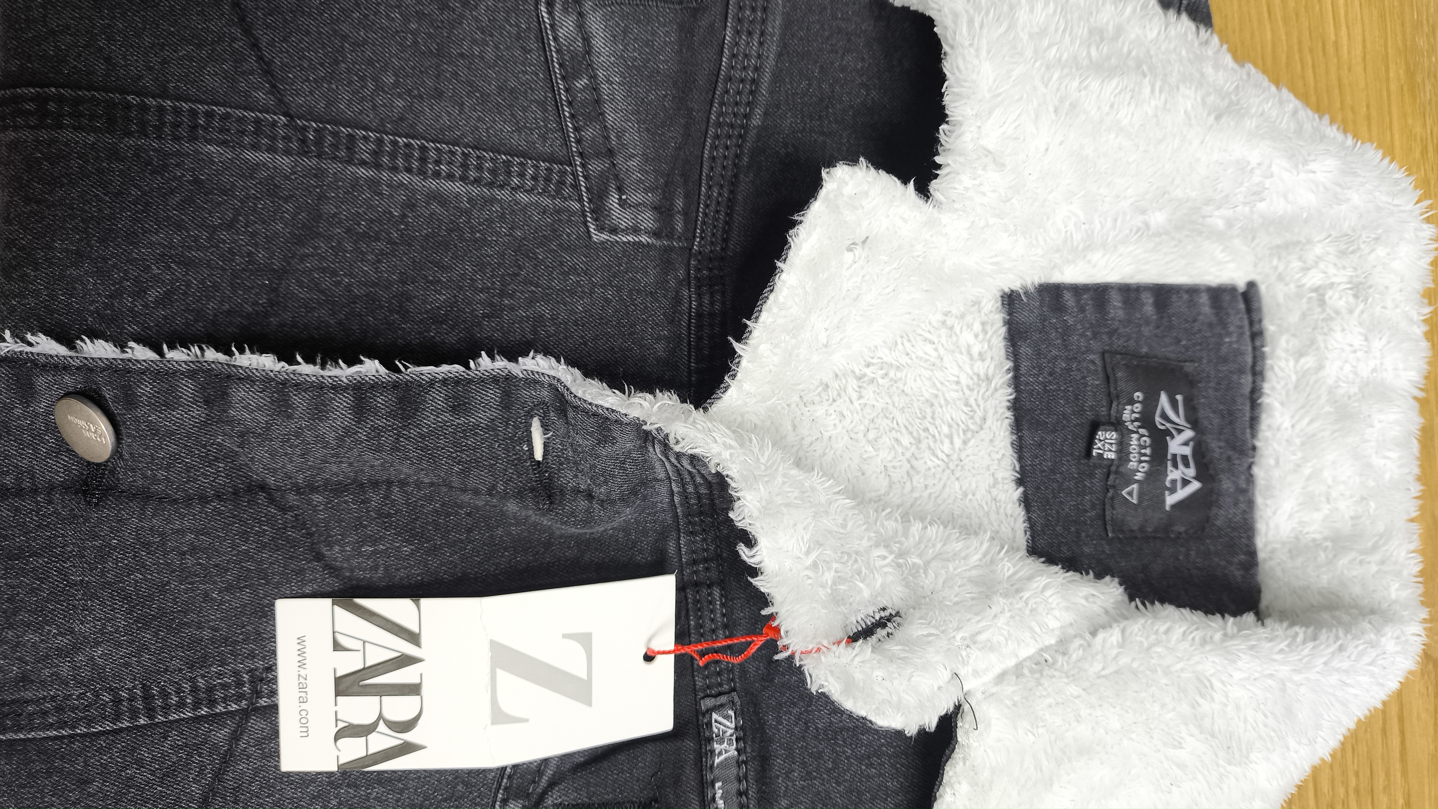 کت جین داخل خز پارچه خارجی برند zara رنگ زغالی و آبی