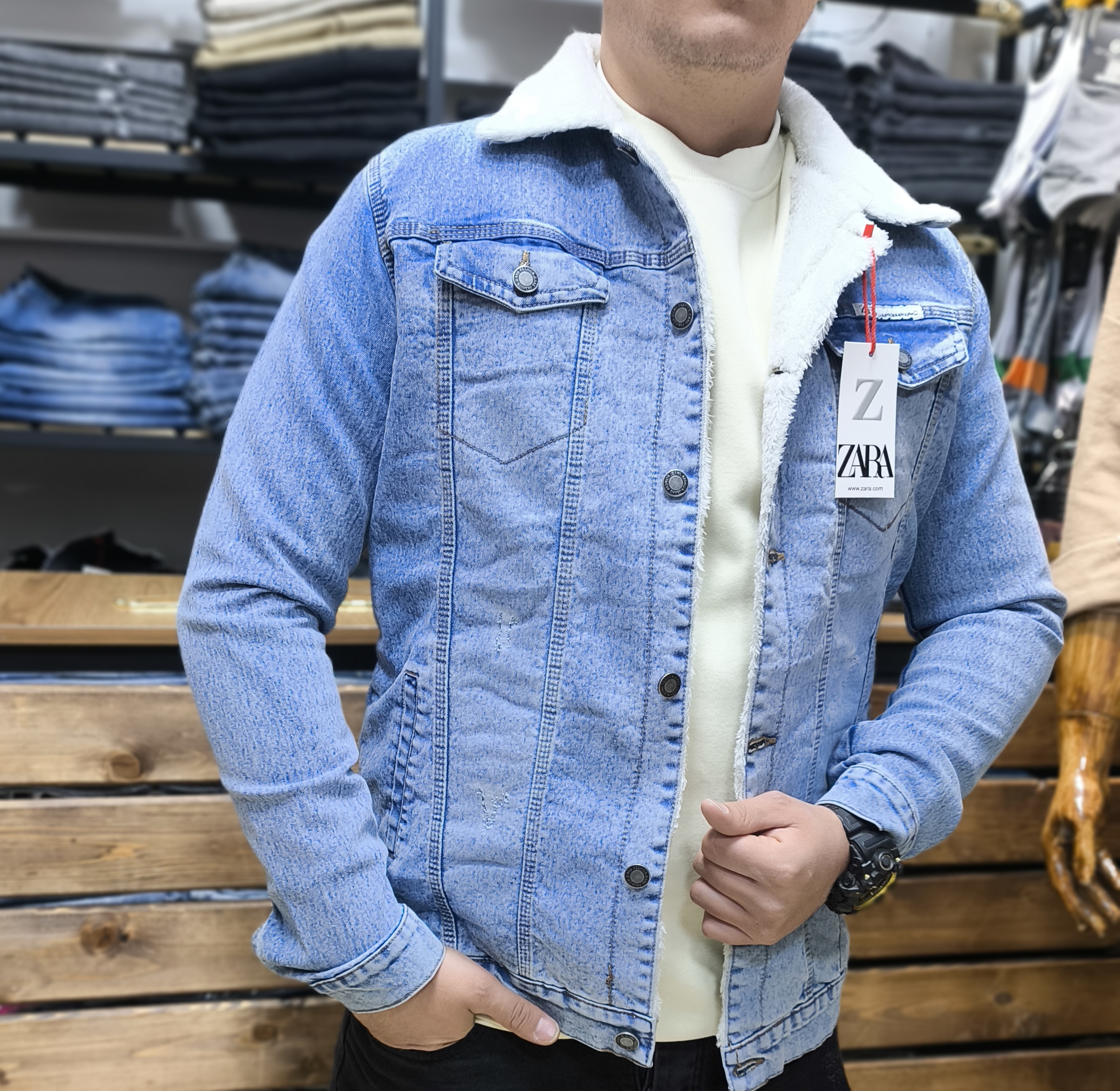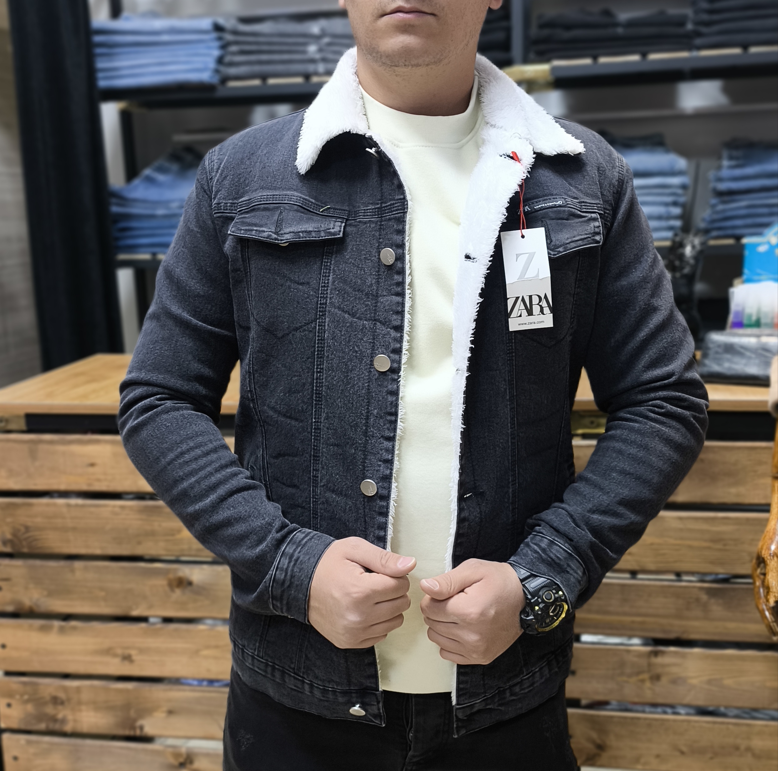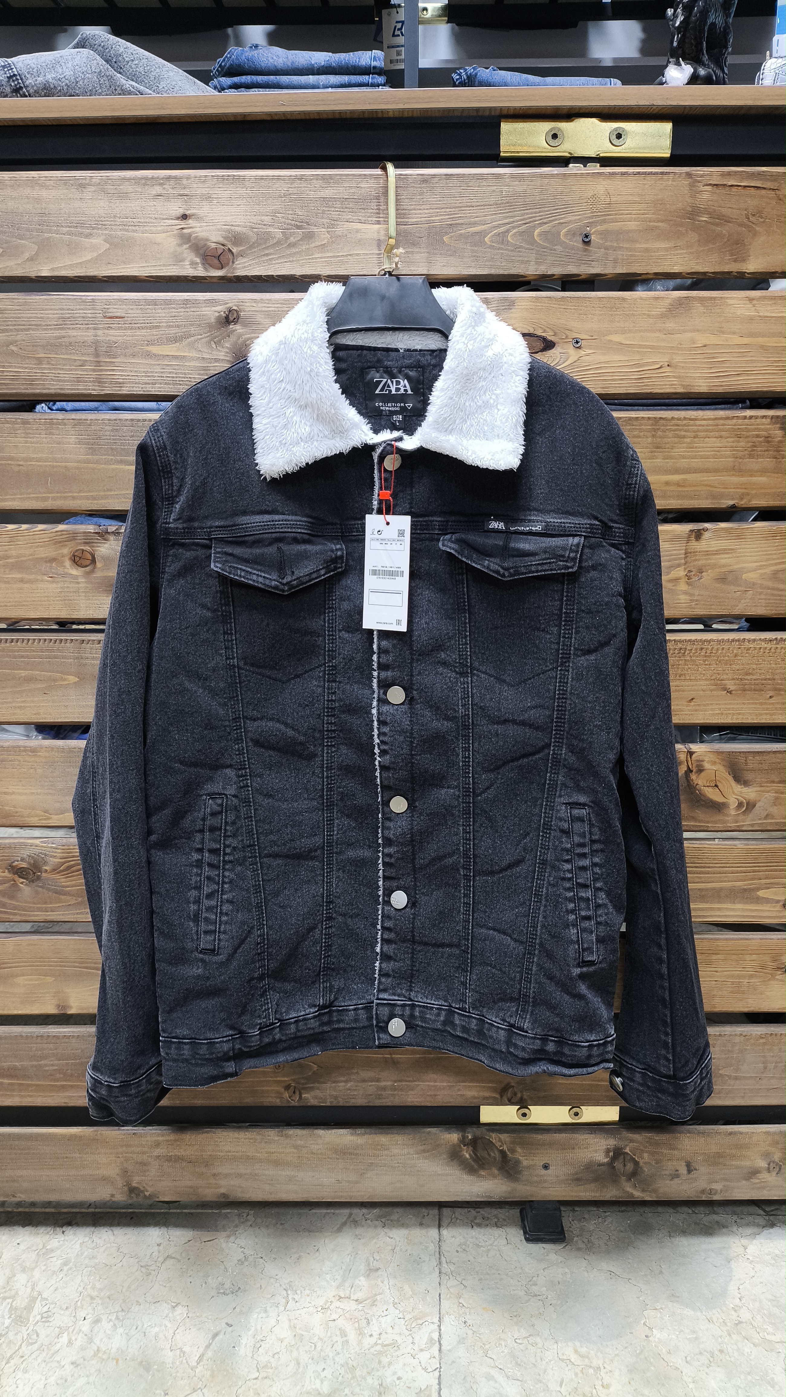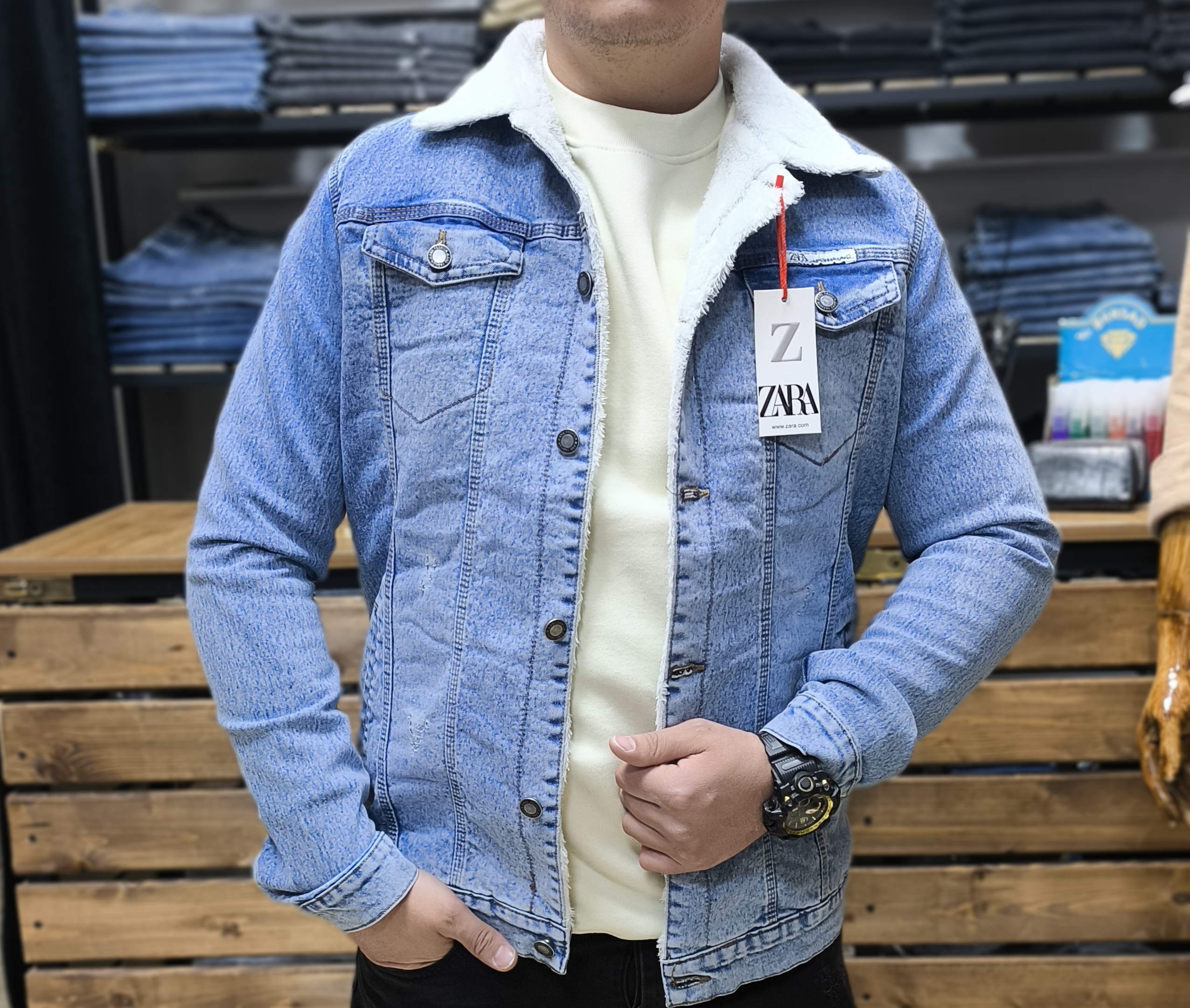 کت جین داخل خز پارچه خارجی برند zara رنگ زغالی و آبی