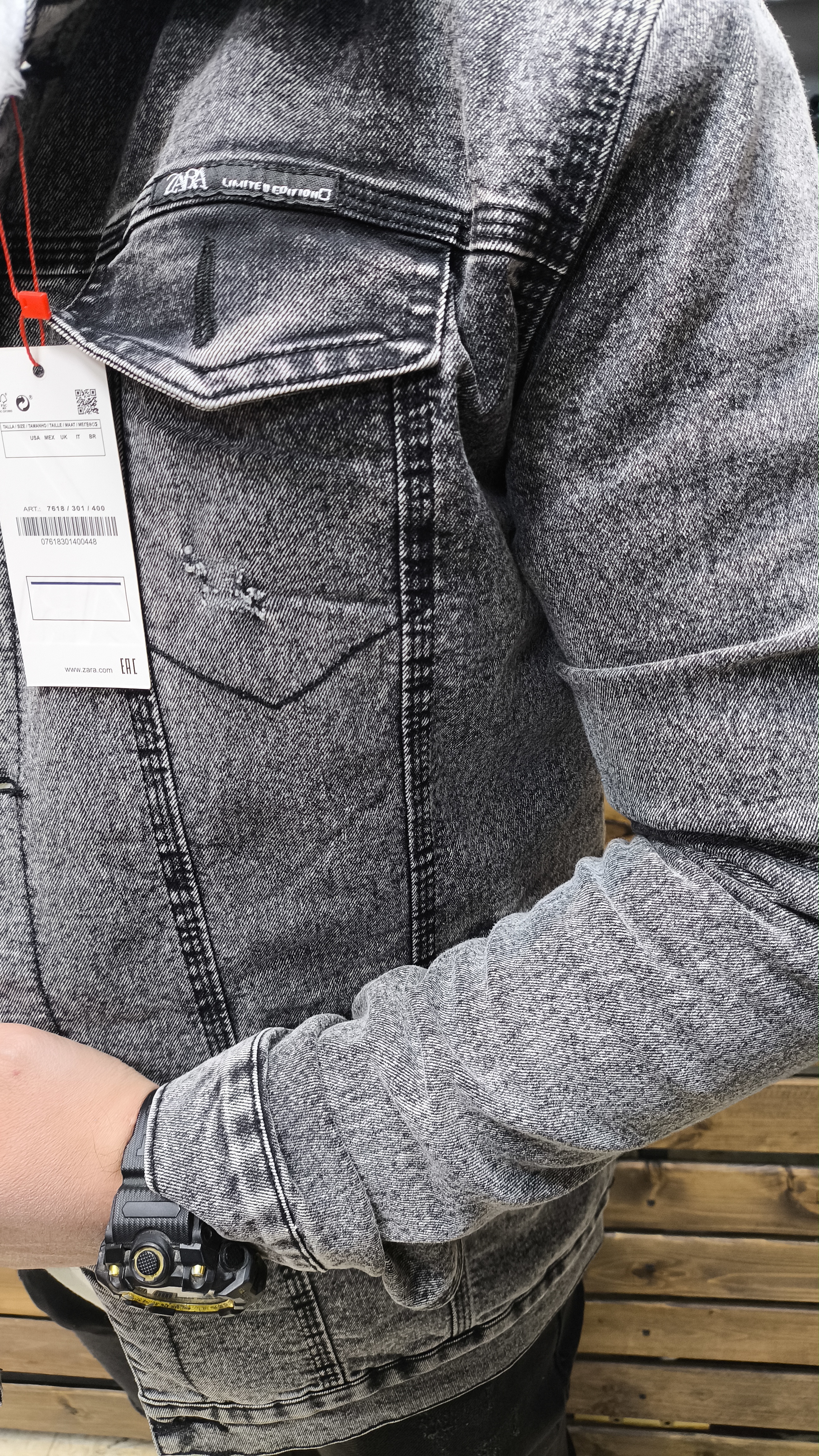 خرید کت جین طوسی روشن داخل خز برند zara کد2026